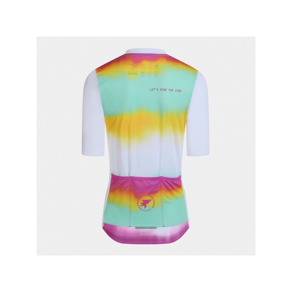 Dres je vybaven celopropínacím zipem s aretací, který umožňuje regulovat ventilaci a komfort podle aktuálních podmínek. Na zadní straně se nachází praktické kapsy s elastickým zakončením, které bezpečně udrží energetické gely, telefon nebo další nezbytnosti a zároveň optimalizují rozložení hmotnosti.
