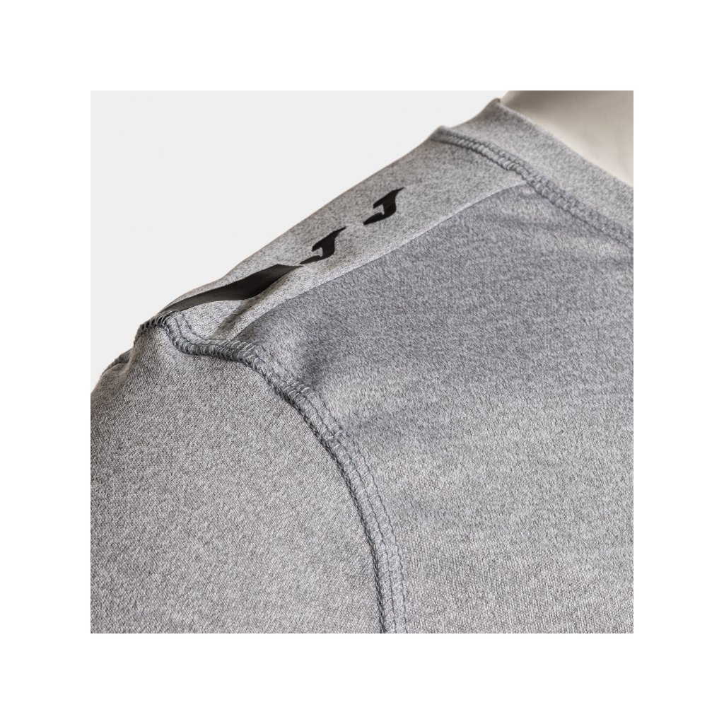 Tričko má kulatý výstřih ze základního materiálu, zpracovaný pomocí plochých švů FLATLOCK, které minimalizují tření a zabraňují podráždění pokožky v oblasti krku.
