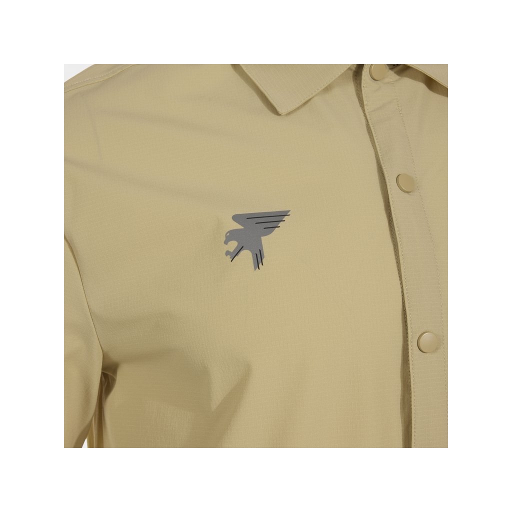 Košile je vybavena zapínáním na druky (snap closure), které umožňuje rychlé a pohodlné oblékání. Stejně řešené jsou i manžety rukávů, které lze snadno přizpůsobit podle potřeby.