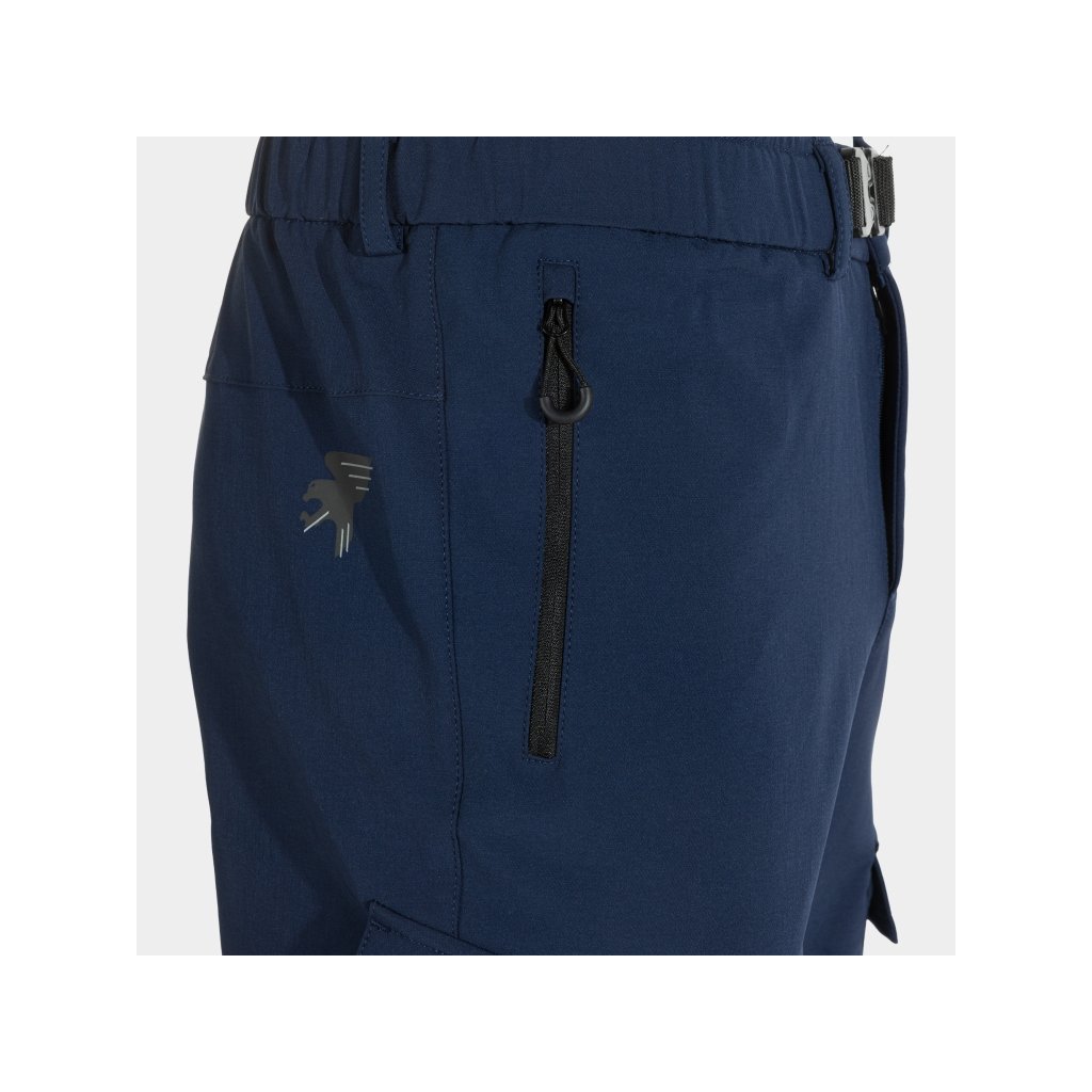 Nastavitelný elastický pas s opaskem a rychloupínací přezkou umožňuje perfektní přizpůsobení postavě. Uzamykatelný zip a zapínání na druk dodávají pocit jistoty i při intenzivním pohybu. Kalhoty disponují praktickými kapsami – dvěma bočními na zip a dvěma nákladními na suchý zip, kam bezpečně uložíte všechny drobnosti.