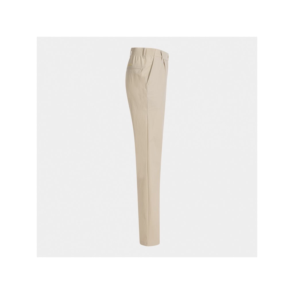 Kalhoty jsou vybaveny elastickým pasem, kovovým knoflíkem a zipem, které zajišťují optimální usazení a pohodlí při nošení. Praktické řešení doplňují čtyři kapsydvě boční a dvě zadní – ideální pro drobnosti.