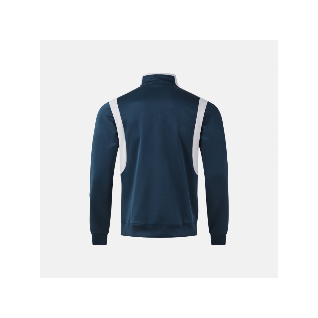 Poloviční zip umožňuje rychlou regulaci ventilace a tepelného komfortu podle intenzity pohybu. Vyšší límec chrání krk před chladem a zvyšuje pocit pohodlí během tréninku. Ribované manžety a spodní lem zajišťují stabilní usazení mikiny a zabraňují úniku tepla.