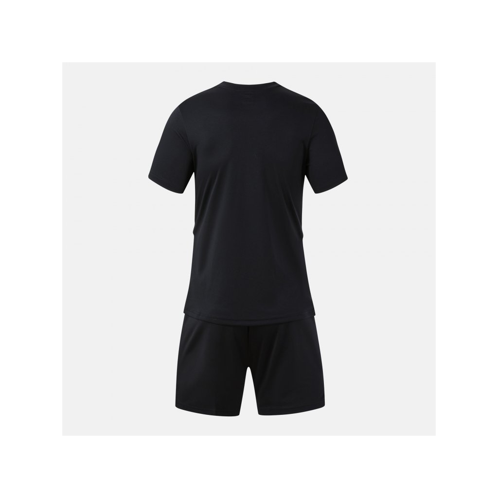 Set se skládá z trička s krátkým rukávem a šortek. Tričko má elastický kulatý výstřih, který poskytuje volnost pohybu a pohodlí během hry. V horní části hrudi se nachází kontrastní barevný pruh, který dodává moderní sportovní vzhled a ladí s ostatními detaily soupravy.
