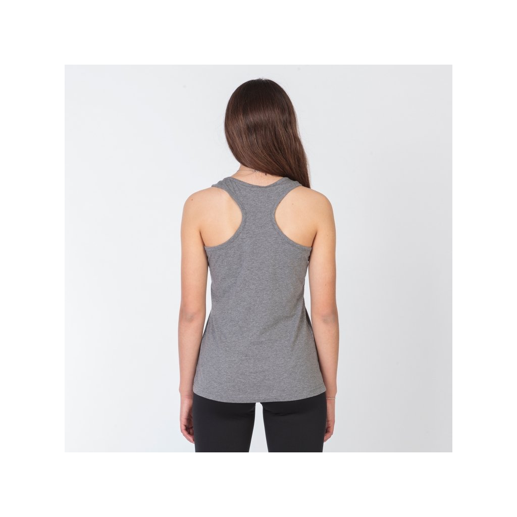 Tílko má pohodlný kulatý výstřih a je navržené se střihem halter. Výrazným prvkem jsou sportovní záda typu swimmer back, která zajišťují lepší usazení v oblasti ramen a zároveň poskytují maximální volnost pohybu při cvičení.