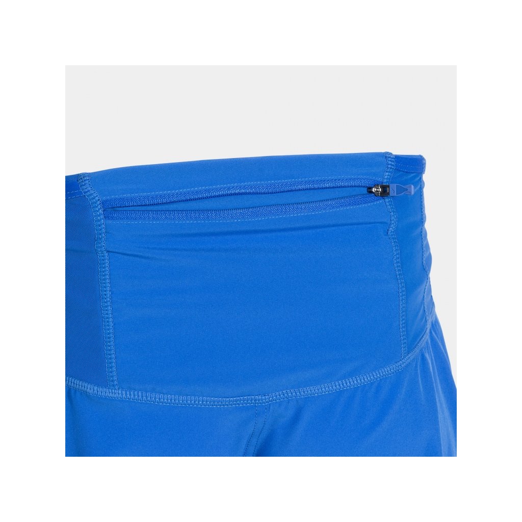 Šortky mají elastický pas s možností stažení pomocí šňůrky, takže se přizpůsobí postavě a drží pevně na místě bez sklouzávání. Velkou výhodou je praktické řešení kapes kolem pasu, které umožňuje běhat bez dalších doplňků. Kapsy slouží pro uložení energetických gelů, tyčinek, soft flask lahve nebo osobních věcí jako mobil, klíče či sluchátka. Jsou rozmístěné po celém obvodu pasu, část z nich je z lehké síťoviny a pružného pásku. Zadní kapsa je navíc doplněna o zajištěný zip, takže drobnosti zůstanou bezpečně na místě.