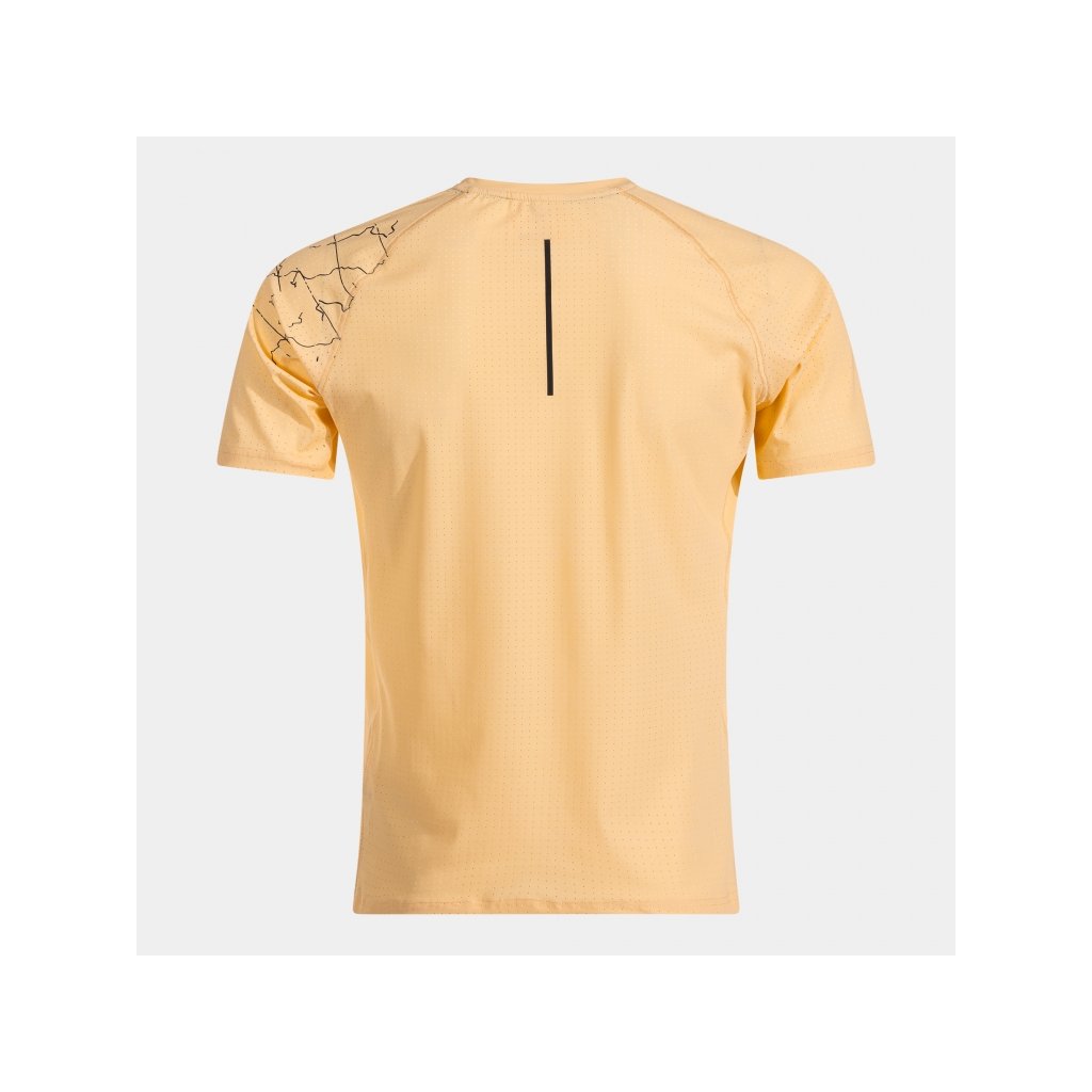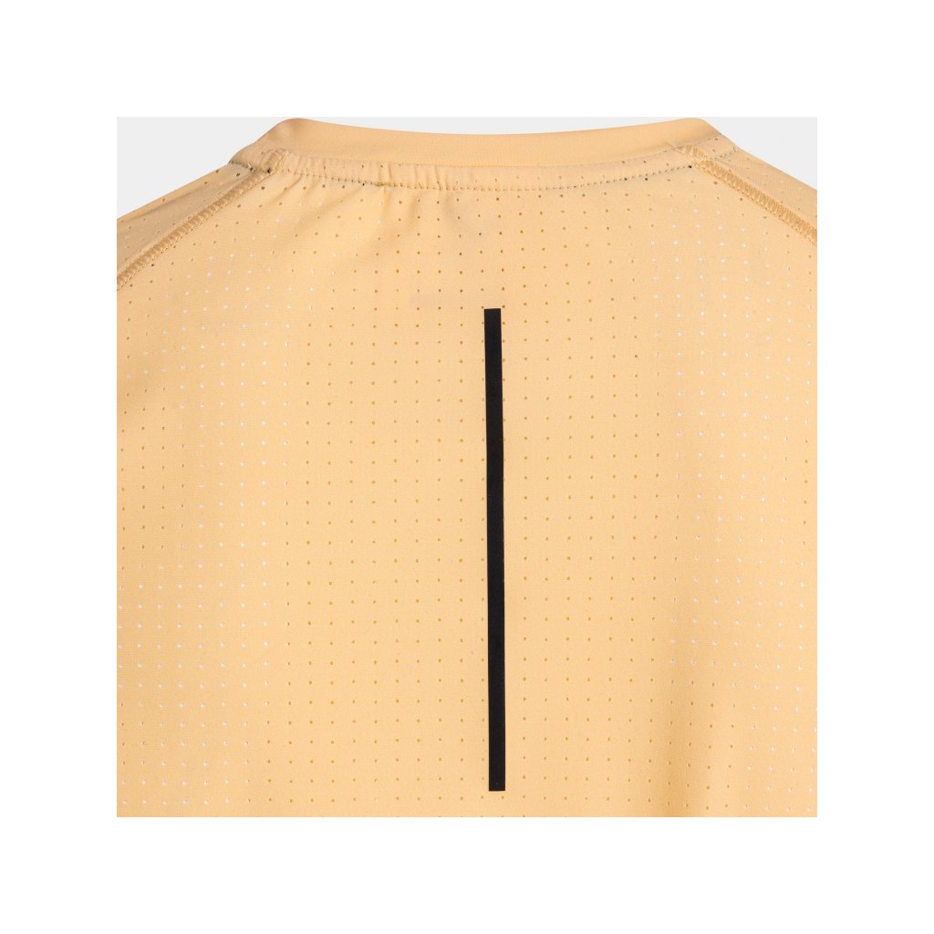 Tričko má kulatý výstřih a raglánové rukávy, které spolu s elastickým úpletem podporují přirozený pohyb paží a neomezují běžce ani při vysokém tempu.